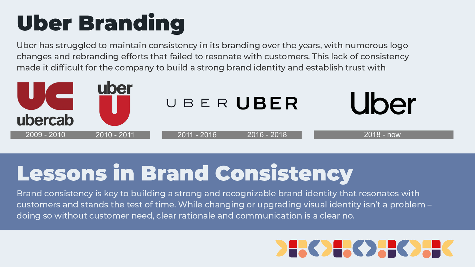 Uber has struggled to maintain consistency in its branding over the years, with numerous logo changes and rebranding efforts that failed to resonate with customers. This lack of consistency made it difficult for the company to build a strong brand identity and establish trust with customers.